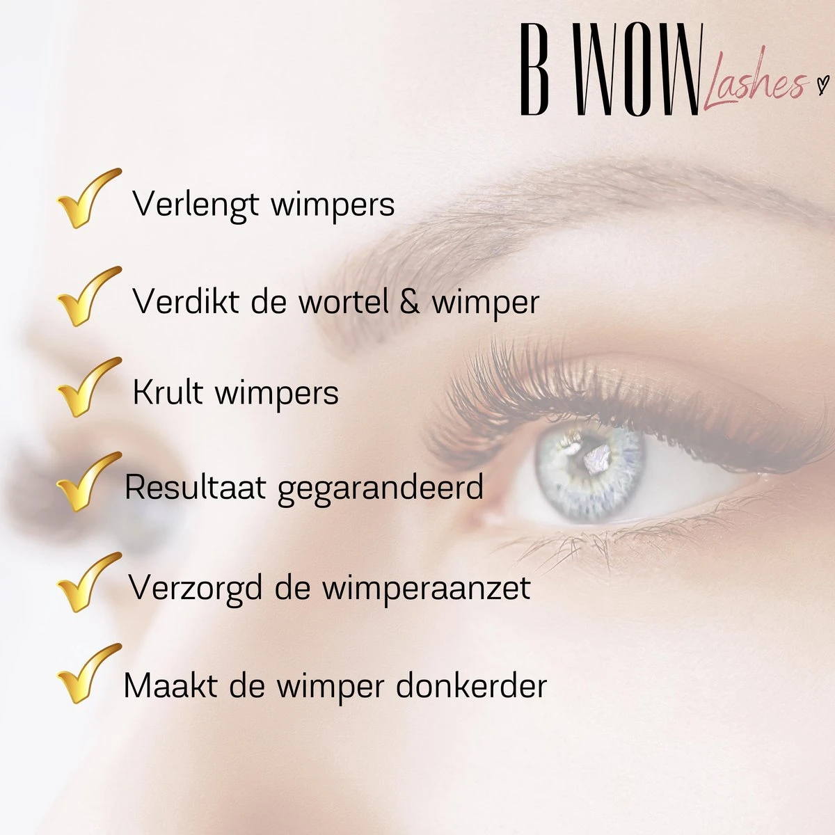 Onzekerheid door korte, dunne of beschadigde wimpers? Met onze B WOW formule zullen je wimpers langer, dikker en voller worden.