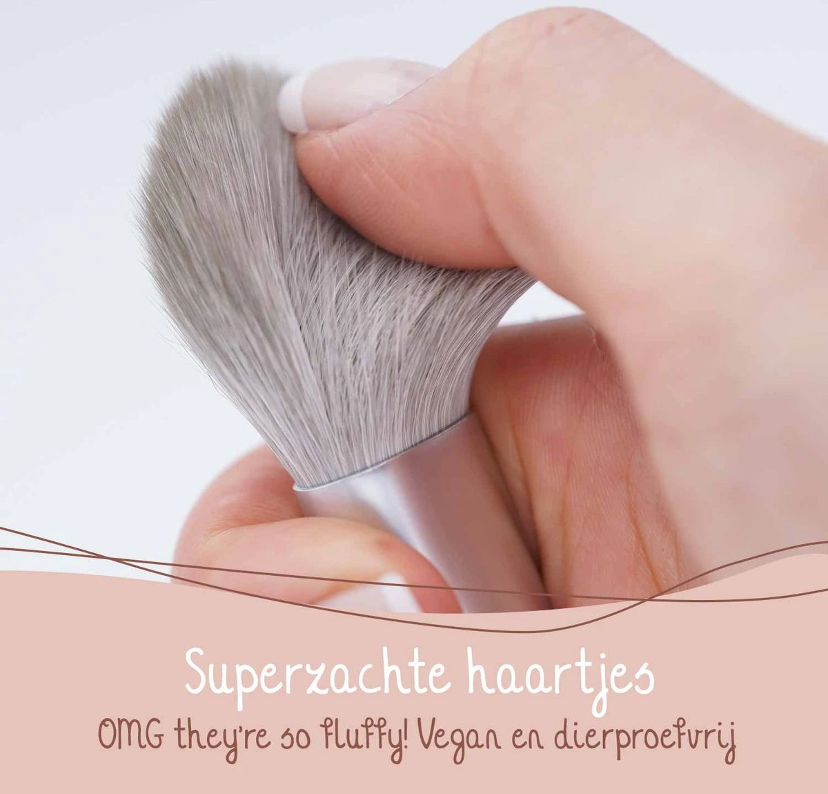 Duurzame kwastenset gemaakt van tarwestro en volledig dierproefvrij. Met de soft-brush technologie zijn dit de zachtste synthetisch kwasten op de markt en heb je een kwastenset om je mooiste look te creëren. De haartjes zijn van de hoogste kwaliteit, met een hoge dichtheid, vallen er niet uit en worden in professionele situaties gebruikt.