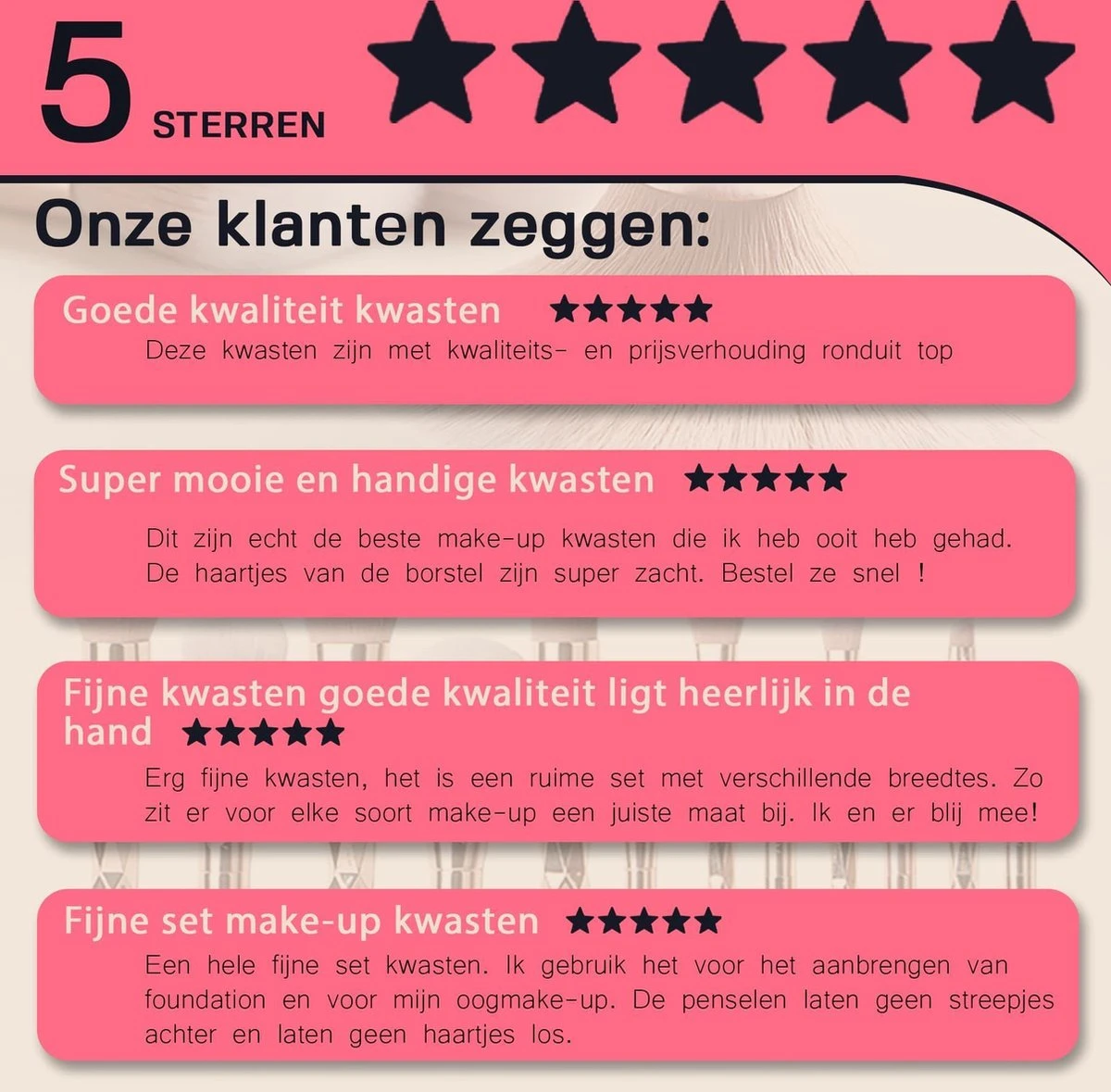 De make up kwasten zijn 18 tot 20 centimeter lang en worden geleverd met een gratis bijpassend luxe roze etui, dit is het cadeau waar iedere vrouw blij van wordt. De kwasten set bevat alle essentiële kwasten om make-up op een professionele manier aan te brengen. Maak je contouren, highlights, oogschaduw of ga je de perfecte eyeliner zetten? Met de Beaurose kwasten set kan het allemaal!