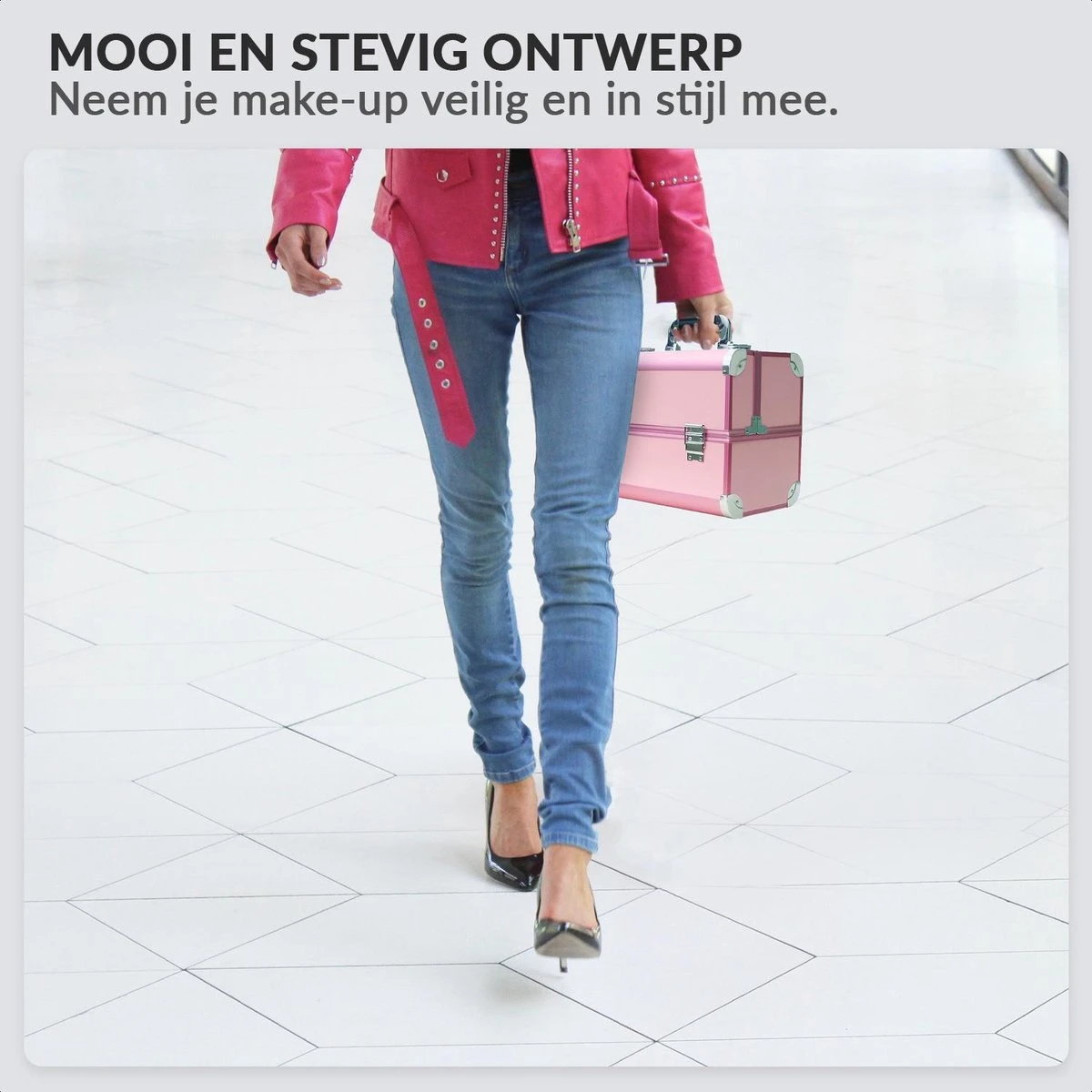 Confibel Cosmetica Koffer – Make Up Koffer Uitklapbaar – 5 Opbergbakken Make-up Koffer – Beautycase/Visagiekoffer /Cosmeticakoffer /Beautycase/ Nagelstylistekoffer – Roze