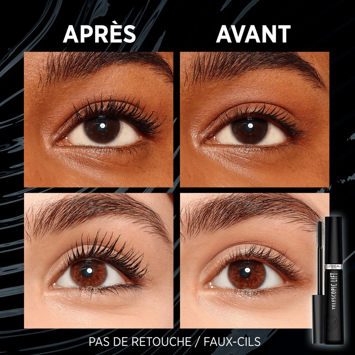 Wil jij langere, vollere en gelifte wimpers? Ontdek de nieuwe Telescopic Lift mascara van L’Oréal Paris! Deze mascara zorgt voor +5mm* lengte, direct volume en lift. Het innovatieve borsteltje heeft pinnetjes met een dubbel haakje aan het einde. Deze haakjes pakken elk wimperhaartje vast en geven jouw wimpers zo lengte, volume en lift tot 36 uur lang.** Geen zorgen over vegen of vlekken: deze mascara geeft de hele dag niet af. De formule voelt de hele dag comfortabel en licht aan op de wimpers en is verrijkt met ceramidencomplex. Ceramide werkt als een natuurlijk cement wat de wimpers verzorgt en versterkt. De mascara is makkelijk in gebruik en laat je wimpers er dikker en voller uitzien. Ook zorgt deze mascara voor een mooie spreiding van de wimpers. Zo creëer je gemakkelijk veel volume, zonder klontjes. Voor het mooiste effect kan je deze mascara het beste in 2 stappen aanbrengen. Gebruik eerst de bolle kant van het borsteltje om je wimpers te liften. Vervolgens kam je jouw wimpers met de haakjes aan de zijkant van het borsteltje voor separatie, volume en lengte. Makkelijk te verwijderen. Geschikt voor alle type wimpers, gevoelige ogen en dragers van contactlenzen. De formule is vegan en bevat geen ingrediënten of bijproducten van dierlijke oorsprong. *Instrumentele test onder 25 vrouwen **Zelfevaluatie, 111 vrouwen