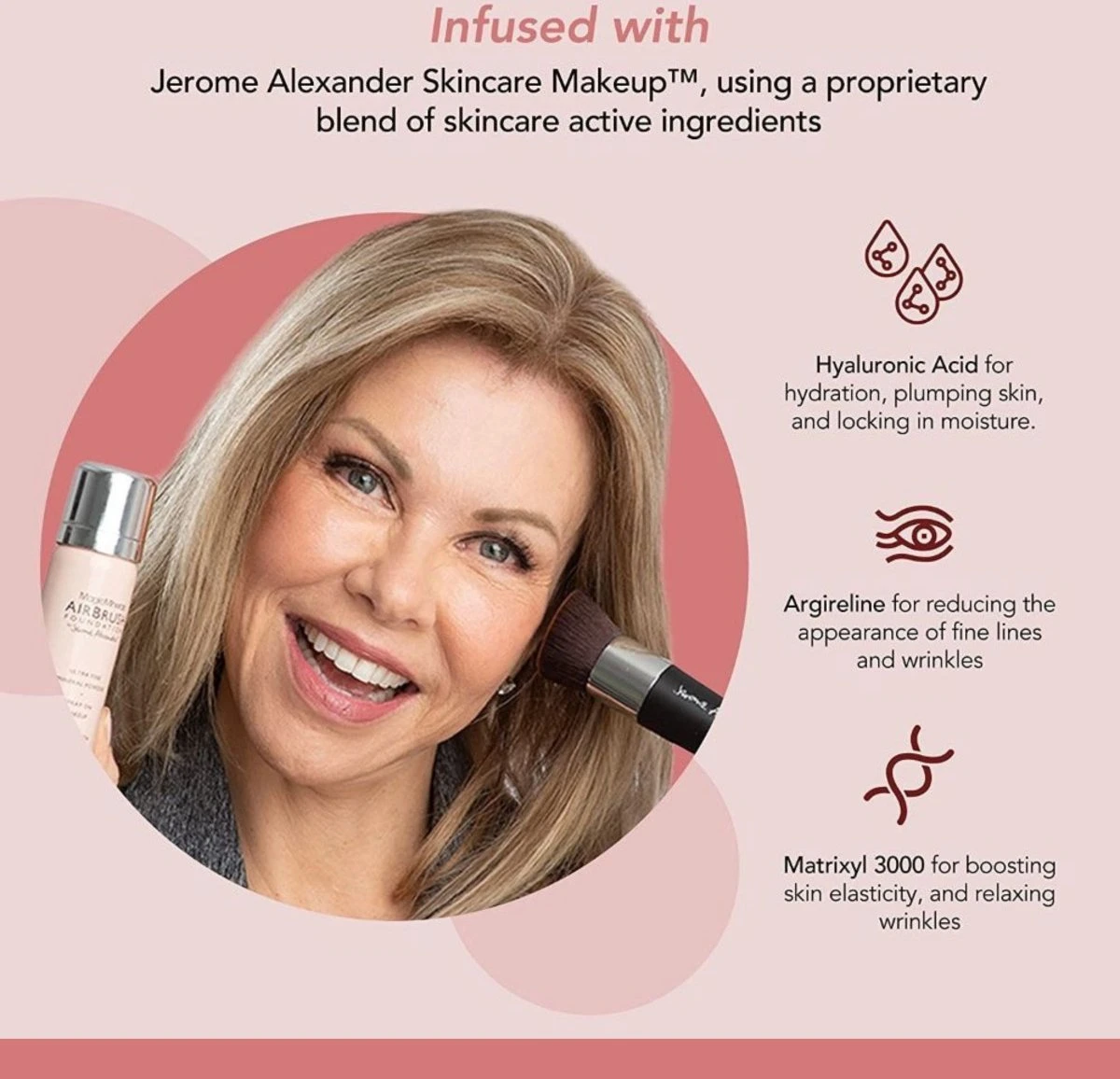Magic Minerals AirBrush Foundation by Jerome Alexander is de innovatieve foundation voor het gezicht. De spray foundation met airbrush effect voorziet het gezicht in een mum van tijd van een stralende gloed en geeft een natuurlijke dekking.