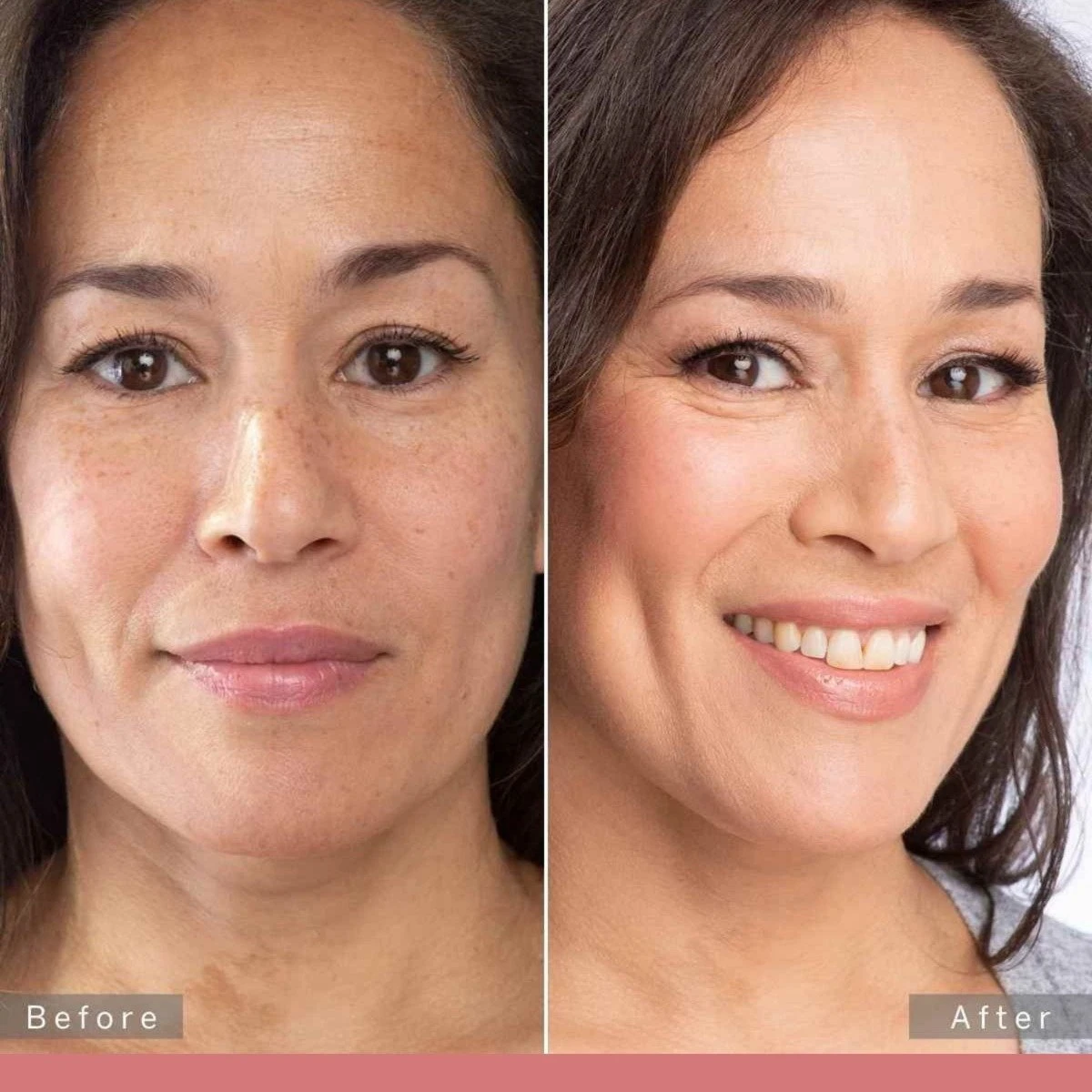 Daarnaast verzorgt het de huid. Hyaluronzuur en Agrireline zorgen voor een verzorgde, gehydrateerde en verhelderde de huid. Bovendien help het om fijne lijntjes en rimpels te verminderen.