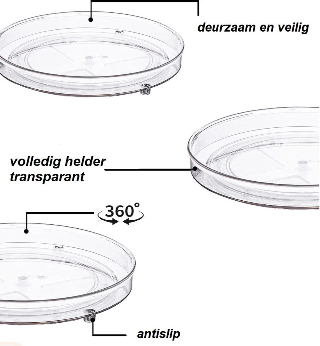 De 360° draaibare make-up organizer houd jouw make-up geordend. Je kunt er diverse kleine, grotere potjes en flesjes op kwijt. Dankzij de 360° soepel draaibare functie kun je gemakkelijk bij het potje dat je nodig hebt. De verhoogde rand zorgt er voor dat jouw potjes niet zomaar van het draaiplateau af kunnen vallen. Ook is de 360° draaibare make-up organizer handig voor jouw verzorginsproducten.
