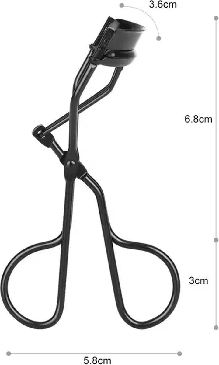De wimperkruller is volledig zwart en bevat een wit vervangbaar stukje.