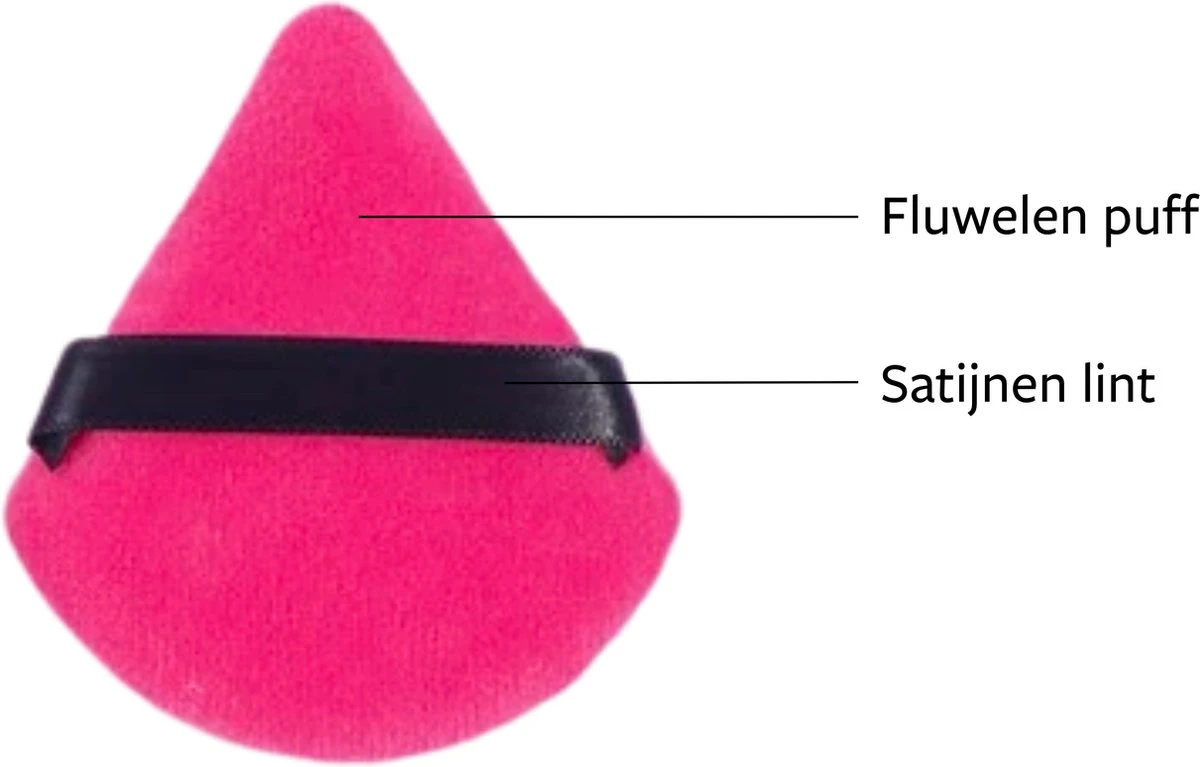 - Handigere maat en vorm! In tegenstelling tot de ronde variant kun je met de driehoekige powder puff gemakkelijk bij alle plekjes van je huid komen. Hierdoor ziet je make-up er gegarandeerd flawless uit. Dat lastige hoekje onder je ogen, bijvoorbeeld…