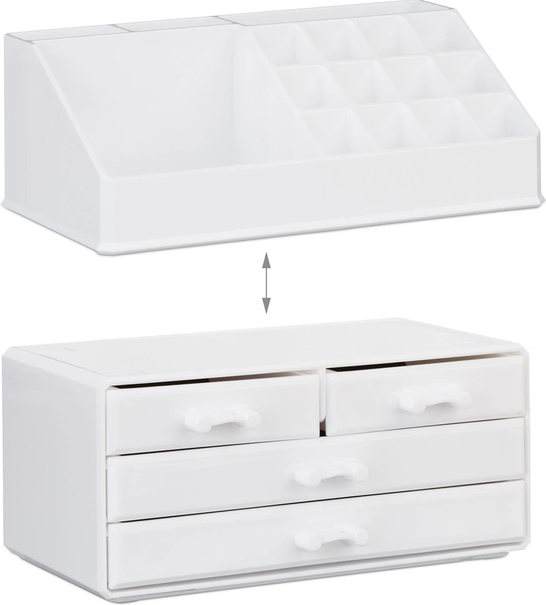 Relaxdays Make-up Organizer – Tweedelig – Cosmetica Opbergdoos – Wit