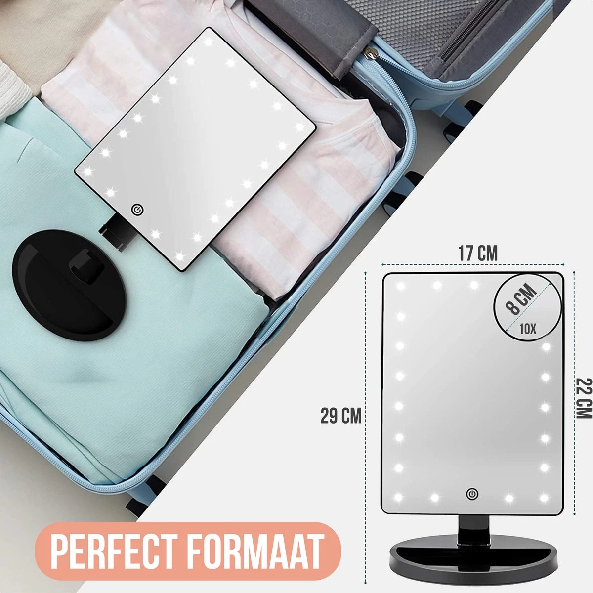 De Strex make up spiegel is voorzien van 22 heldere led lampjes zodat jij waar je dan ook bent kan werken met meer dan genoeg licht. Met een driedimensionaal ontwerp worden al jouw hoeken goed belicht en geniet je van extra precisie met uitstekend zicht.